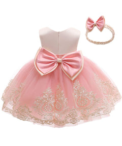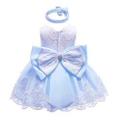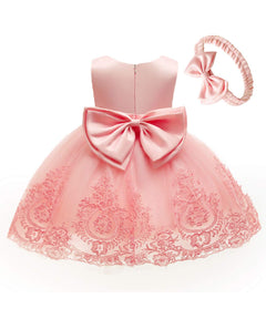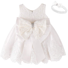 Baby Girls Dress Christening Baptism Party Formal Dress with Headwear